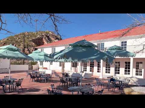 and the Geronimo Pool empty and at peace. and of course an aerial view and a couple more hot pools below called the Robledo and the Dona Anaand there are three new private tubs by the river for soaking and then the bathhouse tubs.and this one outside under the crude wooden shelter called The Luna.and another photo of the Luna and yet another photo of the Luna Hot Tub. here is a photo of an old brochure of the place back in the 30's Now the outside patio is super nice and it looks good to relax and unwind at and have a meal.Now the interiors of the building are unique also. Check this room out. It appears to be a kitchen dining area.Then here is another room with a very long dining table below.and here is the conference room.and what appears as perhaps the lobby with fireplace.and one of the bedrooms with a canopy bed.and another one with a giant bedand one more for review with an LL Bean vibeNow here is a photo of some sort of sitting room it looks like. Notice the paintings of the famous painter, Frida Kalho. Now you are thinking is there anything else to see or do around the resort. Well not to far away is a fantastic Leasburg slot canyon to explore Here is a video of the canyonYou can also visit Fort Selden which is nearby and also visit the Fort Selden Winery Now looking at this aerial photo of Hacienda del Camino there is a huge need of landscaping to be done to improve the appearance of the place as well as repairs and remodels of existing buildings. Here is a review posted by someone on yelp which indicated what the resort needs to do to make it enjoyable to stay at. The place is loaded with potential. Yelp Review Now I have my own ideas for improvement. It needs a full sized swimming pool with a professional 4 level diving board like Lava Hot Springs in Idaho. Look at this amazing outdoor pool at Lava. The Olympic Diving team has trained here in the past. You build this at Hacienda del Camino and make sure the pool floor features the New Mexico Zia Symbol and it would be a great revenue draw and attraction.Here is the Hacienda del Camino Instagram and an article on the resort. For Glamping purposes the new owners of the resort should invest in some glamping tents called Jupes. These gglamping tents are solar powered so they have heat, AC, and electrical plug ins. Hope the new owners continue to preserve and improve upon the resort. Here in a nice article on Hacienda del Camino real and hot springs Hacienda del Camino Real