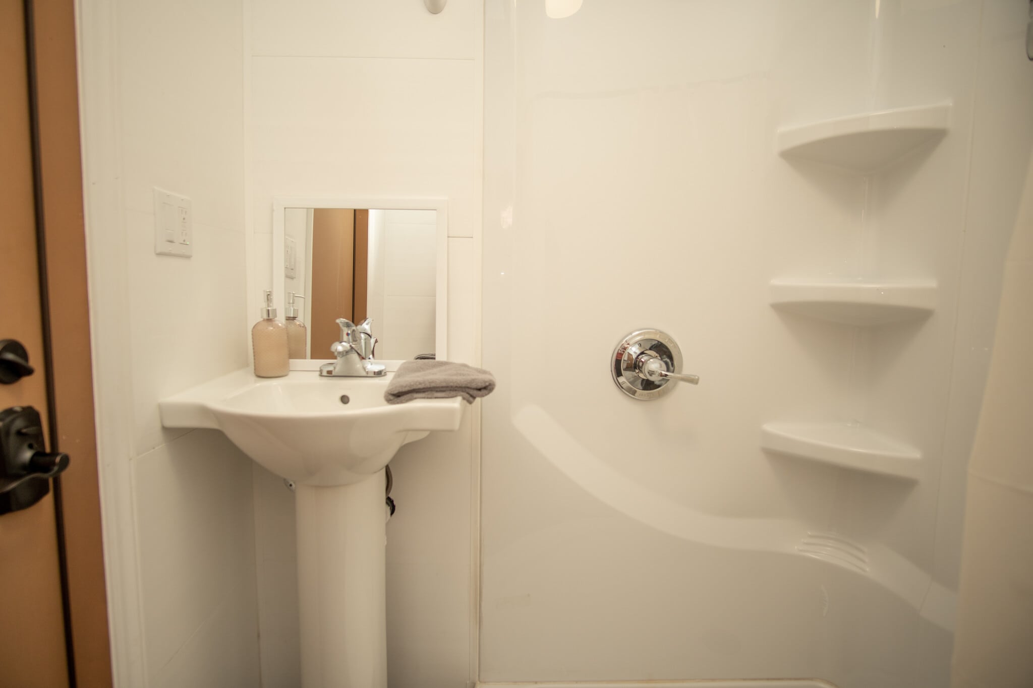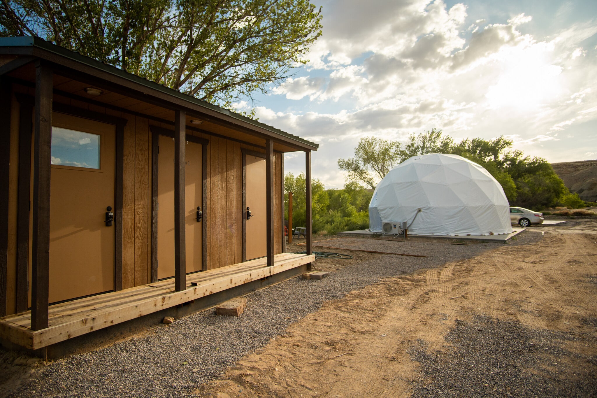 More photos at this link for The Bella Lugosi Room. The final room is The Black Annise Room which has lots of pentagrams and goat heads and the best feature which is a rope suspended bed from the ceiling. and some of the other decor. and the cool mirror That suspended bed I suspect could be pretty amusing if Professional Russian Dancer Polina Kulakova would dance on that bed. Polina Kulakova or maybe something kind of Arabic Polina Kulakova, maybe some hip hop Polina Kulakova or Rap Polina Kulakova or Michael Jackson music Polina Kulakova Watching her dance can make you as cross eyed as Kash Patel. She's dangerous! But I digress.................None of the rooms have bathrooms or showers. There are two shared bathrooms for the rooms. The first is just standard size The tub has bat shaped traction stickers to keep you from slipping I guess. and a larger shared bathroom as well. and it has a shower room and another room with a toilet in it.one last photo of that shower.My idea to improve the hotel for the purchaser is to install 7 private toilet, showers, sink like THE BLUE VALLEY DOMES in Hanksville, Utah. See photos: and sink and what these brown buildings look like outside. that would probably fit in the outside lot where they have concerts. The Black Monarch has a coffee shop also and